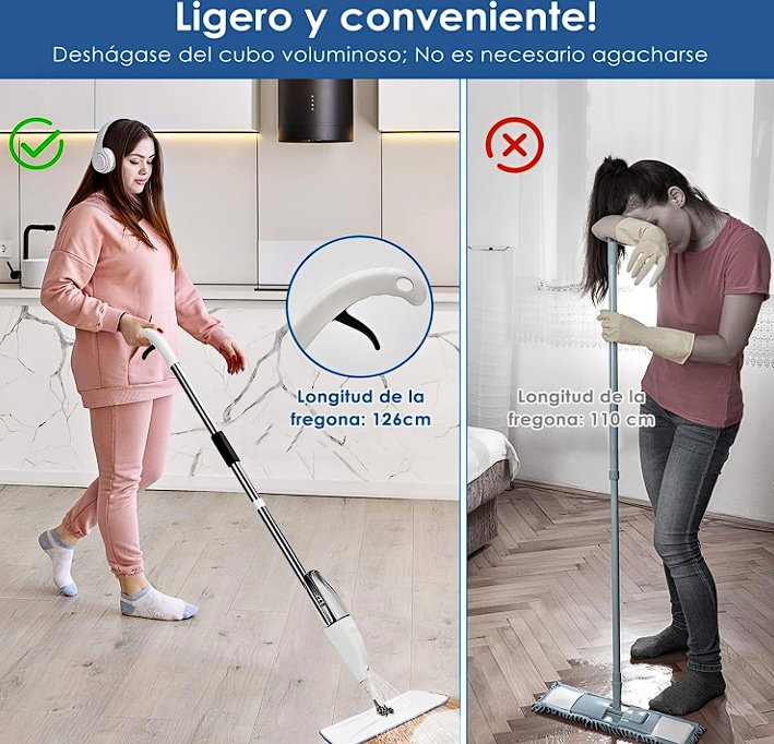 ✅ El trapeador de rociado largo está diseñado para ofrecer una experiencia de limpieza perfecta.